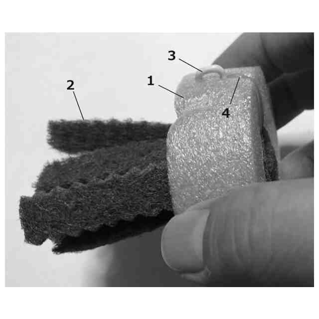 紐状部材4は、輪ゴムを用いることが好ましいが、これに限られず伸縮性のない紐とすることもできる。固定具3は、図に示すものに限らず、紐状部材4を基部1に固定できるものであれば良い。