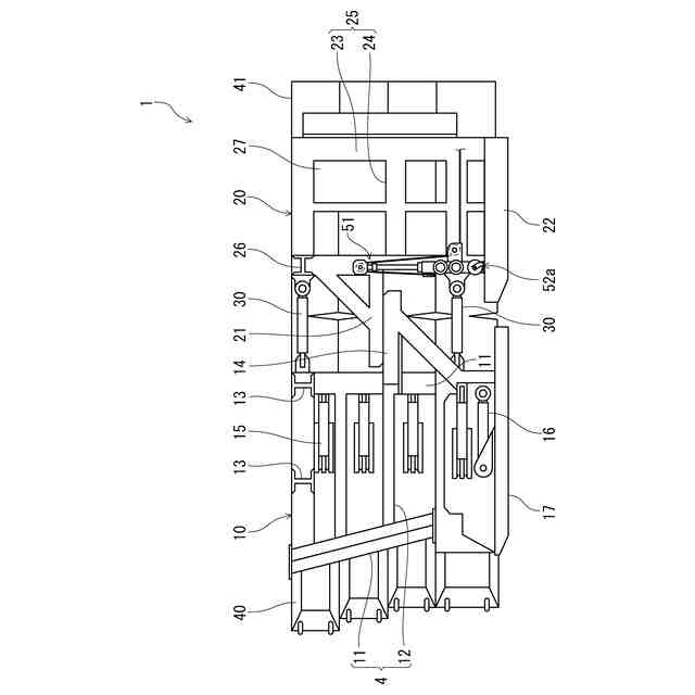 複数個設けられた前記ボトムメッセルのそれぞれに対応して設けられ、該ボトムメッセルを前後方向に移動させるボトムジャッキと、