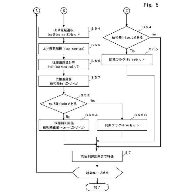 前記同期状態が真の場合に前記位相差があらかじめ定められた第2基準値以上であれば前記同期状態を偽に更新する、