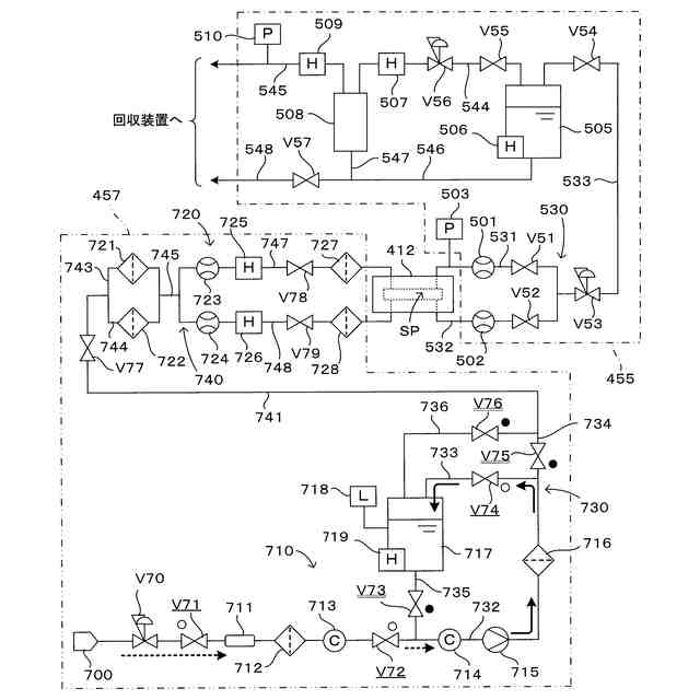 例えば特許文献1に記載の基板処理装置では、循環ラインが接続されたタンクに処理流体が貯留されており、該処理流体はコンデンサが介挿された循環ラインを循環することで液体状に保たれている。そして、循環ラインから分岐する接続ラインが処理チャンバに接続され、この流路に設けられたヒータからの加熱により、液体から超臨界状態となった処理流体が処理チャンバへ供給される。