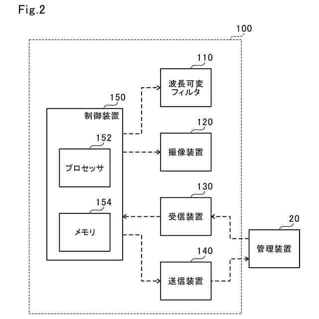 前記波長可変フィルタおよび前記撮像装置を制御する制御装置と、