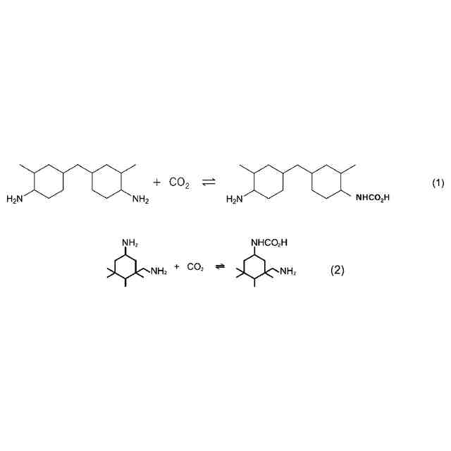 前記環状ジアミンは4,4’-メチレンビス(2-メチルシクロヘキシルアミン)であり、前記ポリアミンはポリエチレンイミンであることを特徴とする、請求項1に記載の二酸化炭素吸収材。