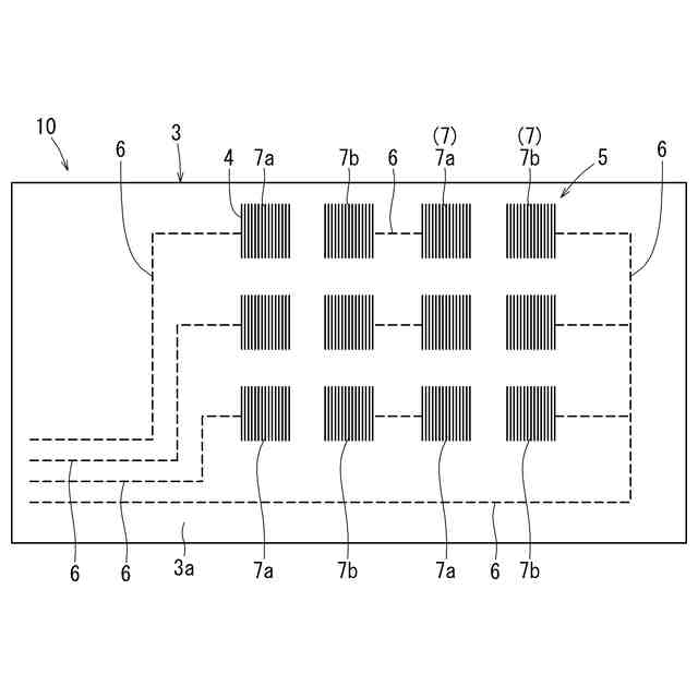 前記基布に導電性糸が縫い付けられることで前記基布の前記導電性糸が縫い付けられた側の面に電気的に導通するよう構成された電気回路図と、