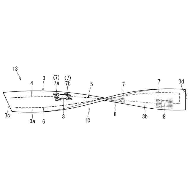 上記構成の一つの特徴及び利点は、基布の片面のみに電気回路図を形成する場合には、上糸と下糸のいずれか一方に導電性糸を用いることにより、導電性糸を一方の面に露出させるように縫い付けることができる。すなわち、導電性糸が縫い付けられた側の面に電気回路図を形成できる。さらに、他方の糸を非導電性の通常の糸を用いることで、導電性糸の使用量を抑えることができ、材料費の削減を図り得る。