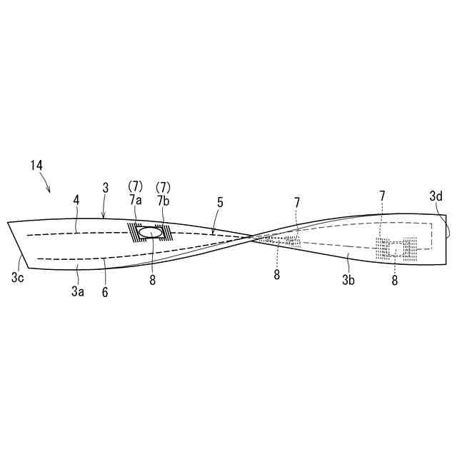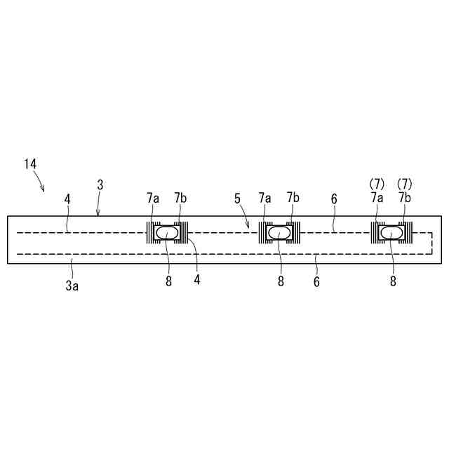 前記帯状基布の長手方向に沿って導電性糸が縫い付けられることで前記帯状基布の前記導電性糸が縫い付けられた側の面に電気的に導通するよう構成された電気回路図と、