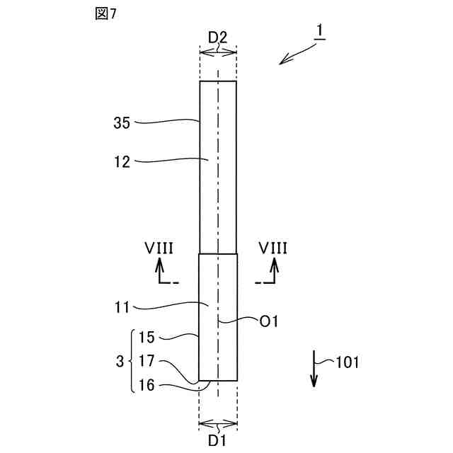実施の形態1の第3変形例に係る工具の構成を示す正面模式図である。