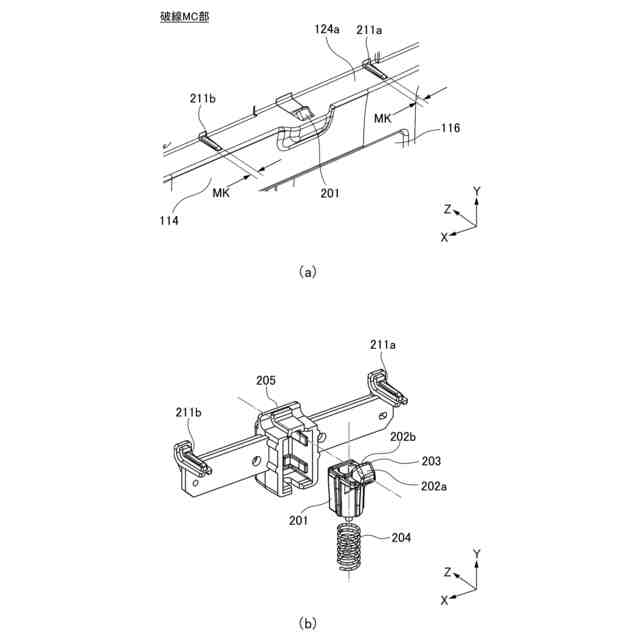 モニタロック機構を構成するロック爪と周辺の構造を説明する図である。