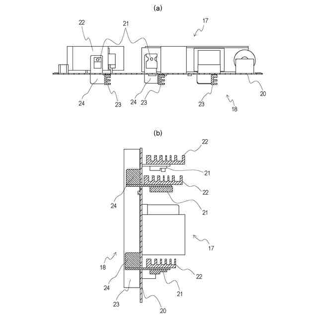 このような状況下において、1つの表示装置で横型設置と縦型設置とを切り替えながら利用できることが必要とされている。これに対し、1つの表示装置で横型設置、縦型設置を兼用した場合を想定して、表示装置の主要発熱部品の冷却方法が考えられている。