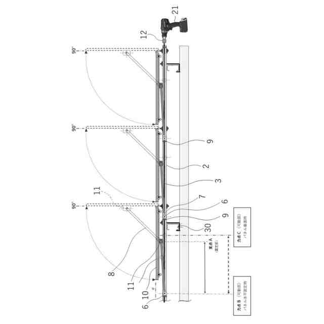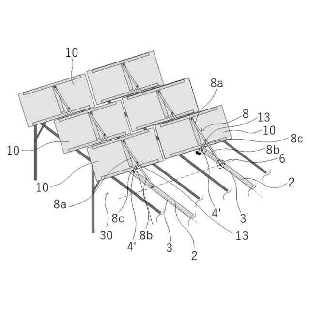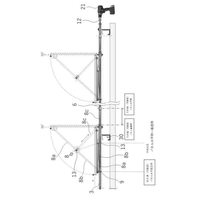 特許文献3には駆動軸を用いて太陽光発電パネルの一端を上下させて太陽光発電パネルの設置角を垂直にすることに関し、例えば、支柱(架台)に連結した伸縮自在なアーム(ピストン)を用いる機構が開示されている。