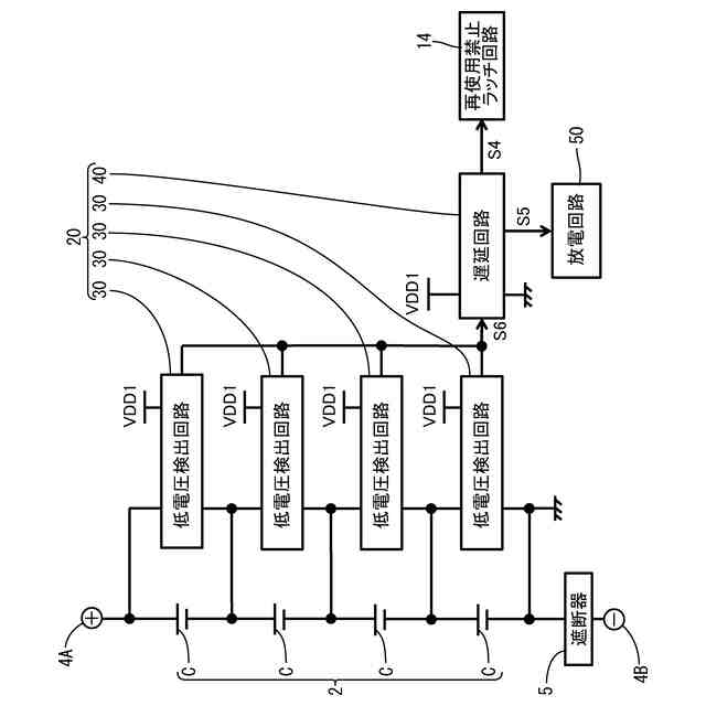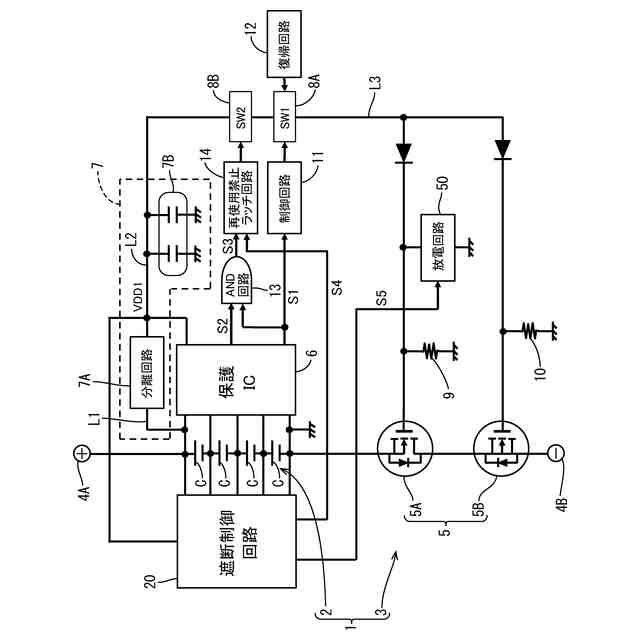 上記のような蓄電装置では、過放電保護と深放電保護の2段階の低電圧保護が行われている。過放電保護によりスイッチが遮断された場合、充電により蓄電素子の電圧が所定の閾値を超えると、スイッチの遮断が解除可能となっている。深放電保護は、過放電保護よりも蓄電素子の電圧が低下した場合に行われる保護である。深放電状態の電圧領域において繰り返し蓄電素子の充放電が行われた場合、銅の溶出・析出が繰り返されることで、電極間の短絡が引き起こされる場合がある。このため、深放電保護によりスイッチが遮断された場合、充電により蓄電素子の電圧が所定の閾値を超えたとしても、スイッチの遮断が解除できないようになっている。すなわち、蓄電素子の再使用が禁止される。