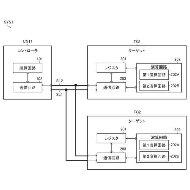【解決手段】コントローラ(CNT1)は、ターゲット(TG1、TG2)とシリアル通信を行うように構成されたコントローラであって、前記コントローラが前記ターゲットの記憶回路(201)に対してデータ書き込みを行う際に、前記ターゲットのアドレス、前記記憶回路のアドレス、及び書き込みデータを含む信号列のCRC値を計算するように構成された演算回路(101)と、前記ターゲットのアドレス、前記記憶回路のアドレス、前記書き込みデータ、及び前記CRC値を前記ターゲットに送信するように構成された通信回路(102)と、を備える。前記演算回路は、前記ターゲットから肯定応答が返ってきたときに計算途中の計算値を保持するように構成されている。