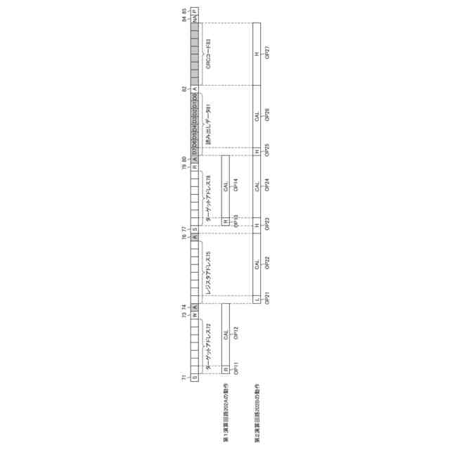 CRCコード5は、ターゲットアドレス2及びデータ書き込みを示す信号3に対するCRC演算の結果である。CRCコード9は、レジスタアドレス7に対するCRC演算の結果である。CRCコード13は、書き込みデータ11に対するCRC演算の結果である。