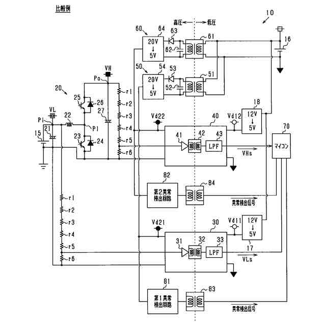しかし、第1電圧検出回路の異常を検出する第1異常検出回路と、第2電圧検出回路の異常を検出する第2異常検出回路とをそれぞれ設けた場合は、回路の追加に伴う基板の大型化や、コストアップを助長することとなる。