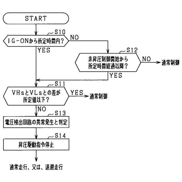 上記構成によれば、電圧検出回路の異常検出装置は、昇圧前電圧を検出する第1電圧検出回路と前記昇圧後電圧を検出する第2電圧検出回路との異常を検出する。