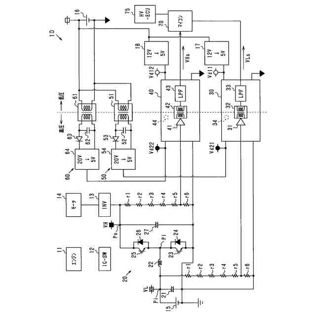 本発明は、上記課題を解決するためになされたものであり、その主たる目的は、電圧検出回路の異常検出装置において、新たな回路の追加を抑制しつつ、電圧検出回路に関わる異常が生じていることを検出することにある。