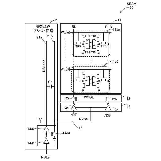 しかし、従来の配線間容量を利用したNBL方式の書き込みアシスト回路は、アシスト量が固定値である。そのため、SRAMの製造後に、製造ばらつきが想定の大きさではなかったときや、仕様変更が生じても、アシスト量を適切な量に調整することができない。
