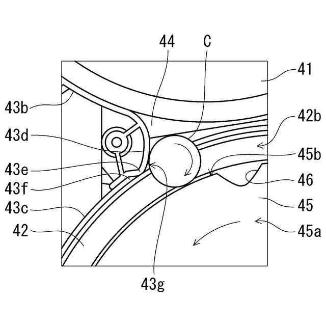 滞留する硬貨が回転円盤の径方向内側に移動する様子を示す図。