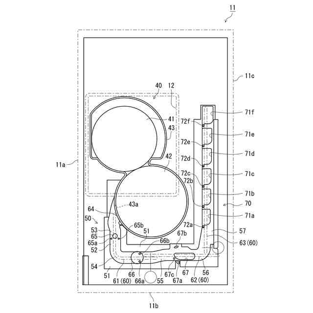 硬貨処理装置の内部構造を概略的に示す平面図。