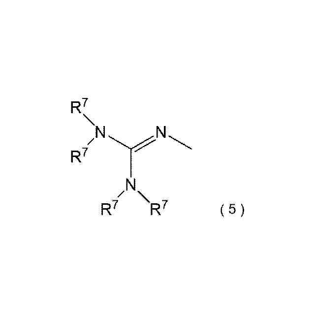 (E)(B)、(C)、(D)成分以外の、下記一般式(5)で示されるグアニジン骨格を1分子中に少なくとも1個有する、非ケイ素系有機化合物、加水分解性オルガノシラン化合物及びその部分加水分解縮合物から選ばれる少なくとも1種からなる硬化触媒:0.1~5質量部、及び