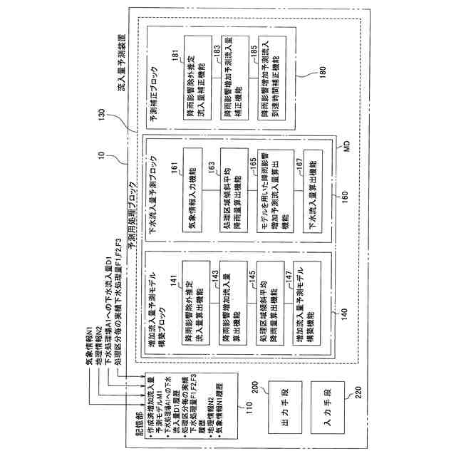 ここで前記水処理施設への下水流入量を予測する一連の操作を行う方法(または一連のプログラム)全体を、流入量予測モデルと呼ぶこととする。