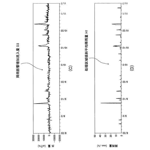 ところで、ポンプ場などの水処理施設が担当する処理区域は広く、このため処理区域内の降雨状態は各地域で異なるばかりか、各地域での降雨量が水処理施設における下水流入量に与える影響も同一ではない。