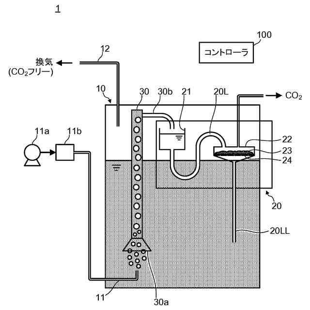 但し、現在の二酸化炭素回収装置においては、イソホロンジアミン等のシクロヘキシルアミン基をもつジアミン化合物を利用した好適な装置構成が十分に検討されていないのが現状である。特に、この種の二酸化炭素回収装置では、カーボンニュートラルの観点から、装置全体の省エネルギー化が重要となるが、かかる観点では、現在の二酸化炭素回収装置には改善の余地がある。