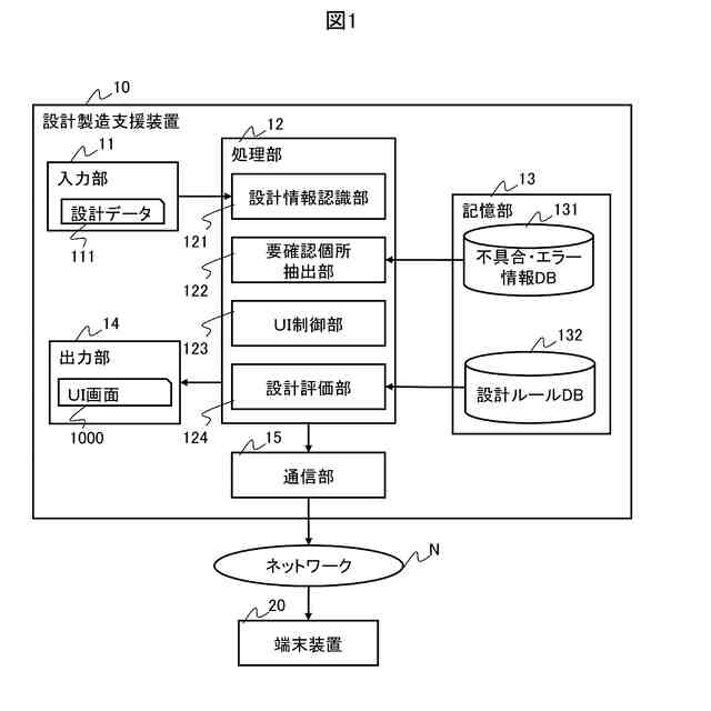 設計データに基づく前記製品の画像をUI画面に表示するとともに、抽出された前記要確認個所を前記製品の前記画像に重畳して表示するUI制御部と、