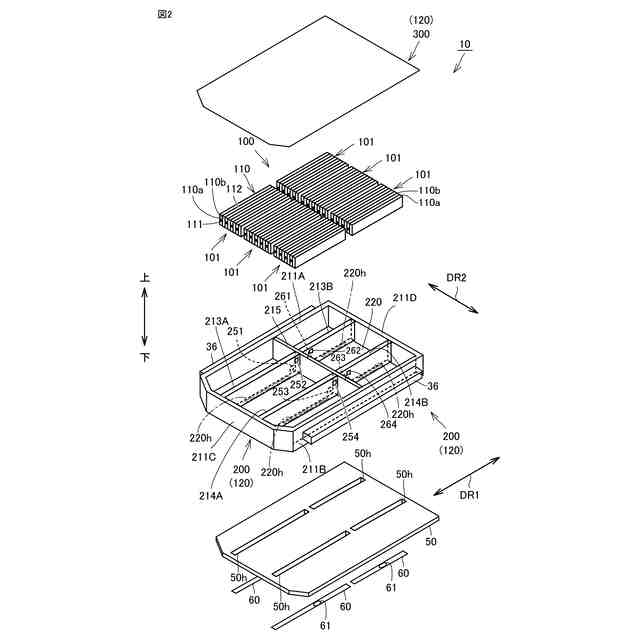 排煙経路を高温のガスが流れることにより、当該排煙経路が設けられたフレーム部材が高温となる。何ら手立てが無い場合には、フレーム部材から当該フレーム部材に隣り合う蓄電スタックに熱が伝わり、蓄電スタックが連鎖的に発熱することが起こり得る。また、排煙経路の出口部は、収容ケースの前壁部あるいは後壁部に設けられているため、出口部までの経路長が長くなり、排煙経路にデブリが堆積することも起こり得る。