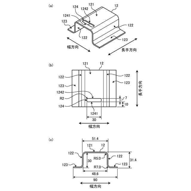 第1の天板部と、前記第1の天板部の幅方向両側に接続する第1の縦壁部と、を有する断面形状がコの字となる第1の部品と、