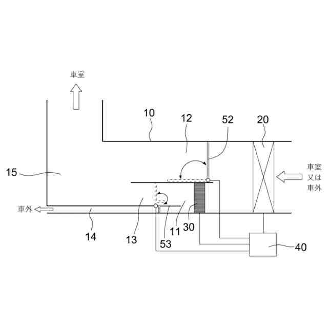 自動車などの各種車両において、車室環境の向上に対する要求が高まっている。具体的な要求としては、車室内を調湿することなどが例示される。このような要求に有効な対策として換気が挙げられるが、換気は、冬場のヒーターエネルギーを大きくロスする要因となり、冬場のエネルギー効率の低下を招く。特に電気自動車(BEV:Battery Electric Vehicle)では、そのエネルギーロスにより、航続距離が大幅に減少するという問題がある。
