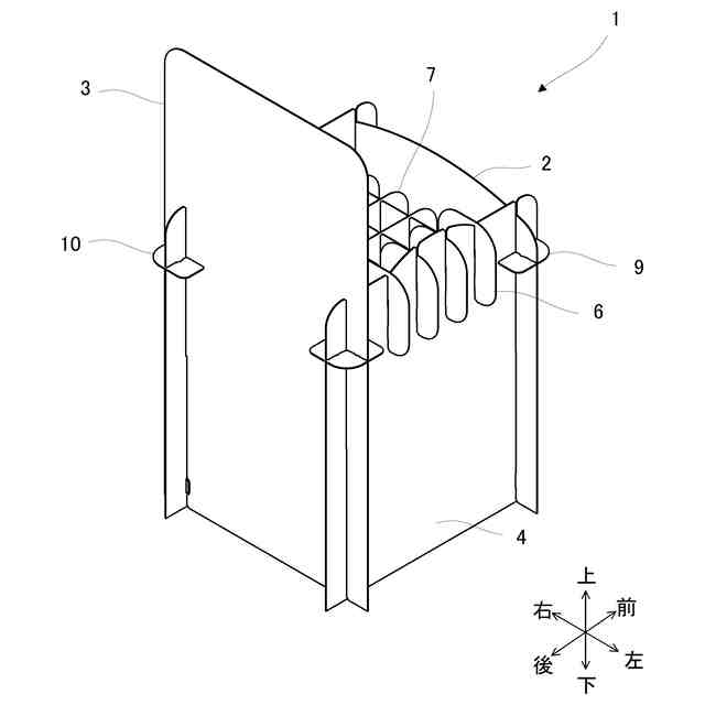 使用する際には、前記正面板部と一対の前記側面板部とが直交する状態に展開するとともに前記背面板部を組み付け、