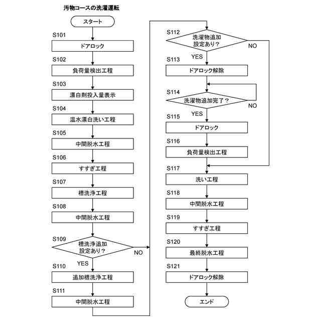 洗濯物の追加が完了したとの判定に基づいて前記洗い工程を開始する、