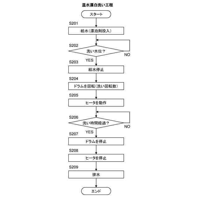以下の特許文献1には、漂白剤を使用して洗濯物の除菌を行う除菌コースの運転が可能なドラム式洗濯機が記載されている。このドラム式洗濯機では、除菌コースが設定されると、洗い工程において、水槽内に洗剤と漂白剤を含む洗濯水が溜められ、当該洗濯水により洗濯物の洗いが行われる。さらに、水槽にヒータが備えられる場合、水槽内に漂白剤が供給される前に洗濯水がヒータで加熱される。