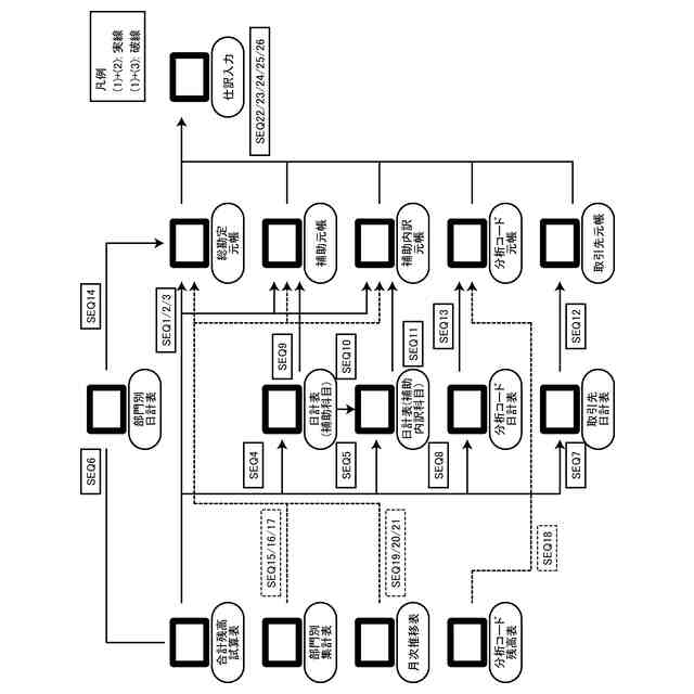 分析用集計科目識別情報、総勘定科目識別情報、全ての補助科目を指定する文字又は特定の補助科目を指定する補助科目識別情報、全ての補助内訳科目を指定する文字又は特定の補助科目を指定する補助内訳科目識別情報を関連付けて登録した分析用集計科目マスタと、