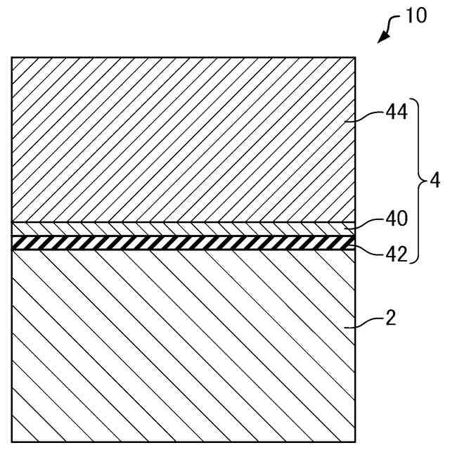 前記第2層は、前記基板と前記第1層との間に位置し、