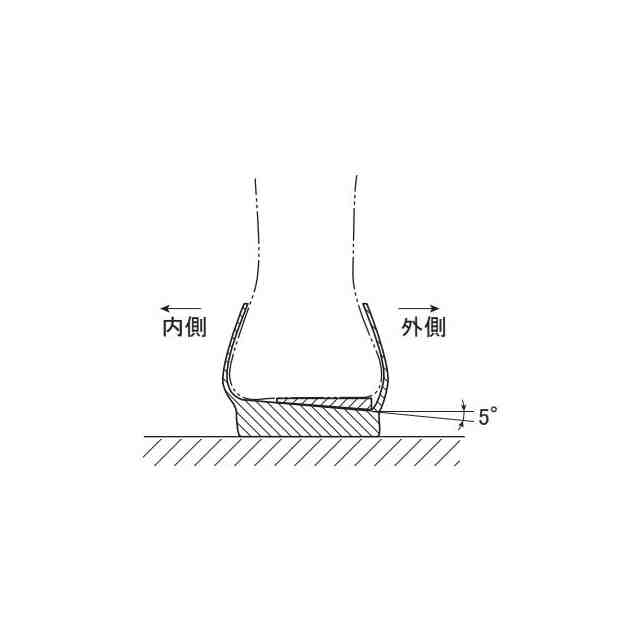 踵を支える形状を水平面にするとされているが、靴の中が傾いているためカップ型にするだけでは水平面にはならない。