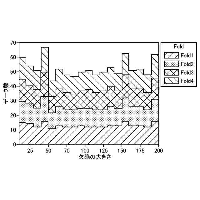 図4Eは、本実施の形態にかかる外観検査システムにおける各Foldにおける欠陥の大きさの分布例を示す図である。