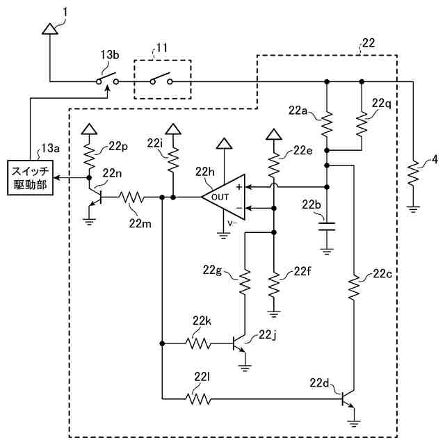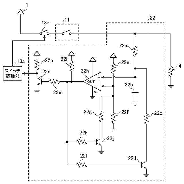 図2に示す電力監視回路22の回路例を示す回路図である。