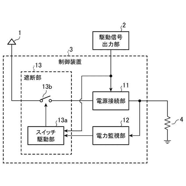 駆動信号出力部2は、直流電力の供給を指示する駆動信号を制御装置3に出力する。