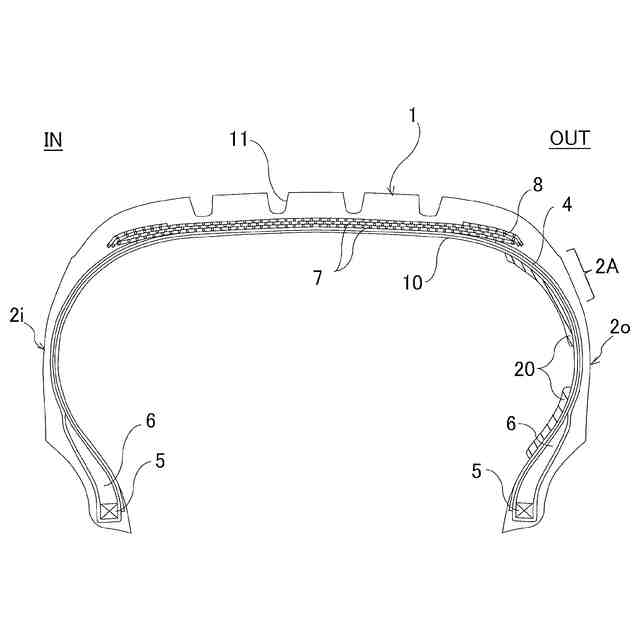 転がり抵抗を低減するために、空気入りタイヤの軽量化が行われている。軽量化の手法として、トレッドゴム層の厚さを薄くするだけでなくサイドゴム層を薄くすることも行われている。しかしながら、サイドゴム層を薄くすると、例えば縁石乗り越し時にサイドカットが発生し、そこからエア漏れを生じることがある。そのため、サイドカットによるエア漏れを抑制することが求められている。