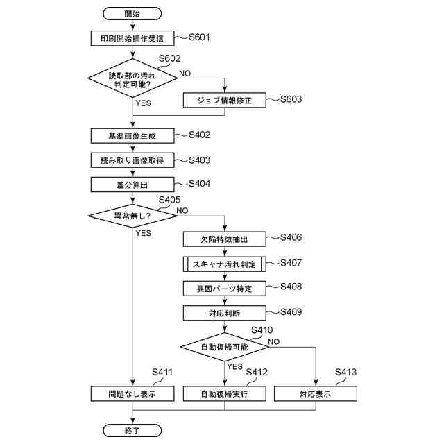 一方、画像診断に使用するテストチャートでは片面印刷が行われていた。すると、片面印刷のうち画像が形成されていない面を読み取る画像読取部上に、紙と同色の汚れがある場合に汚れを検出できず、装置内の不具合の箇所を特定することができない。