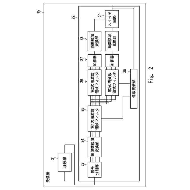 適応等化フィルタが、時間広がりの大きい効果を補償する場合、時間広がりの大きい応答を表現可能な大きなフィルタが適応等化フィルタに使用され、適応等化フィルタにおいて、補償に必要な計算量は増大する。時間広がりが大きい効果の補償を効率的に行うための方法の1つとして、周波数領域フィルタの採用が考えられている。周波数領域では、時間領域での入力信号へのフィルタ応答の畳み込み演算を、単なる乗算として扱うことができる。また、時間領域信号の周波数領域への変換は、fast Fourier transform(FFT)によって効率的に行うことができる。このため、応答の時間広がりが大きい場合、周波数領域フィルタは、時間領域フィルタに比べて、必要な計算量が低減される。