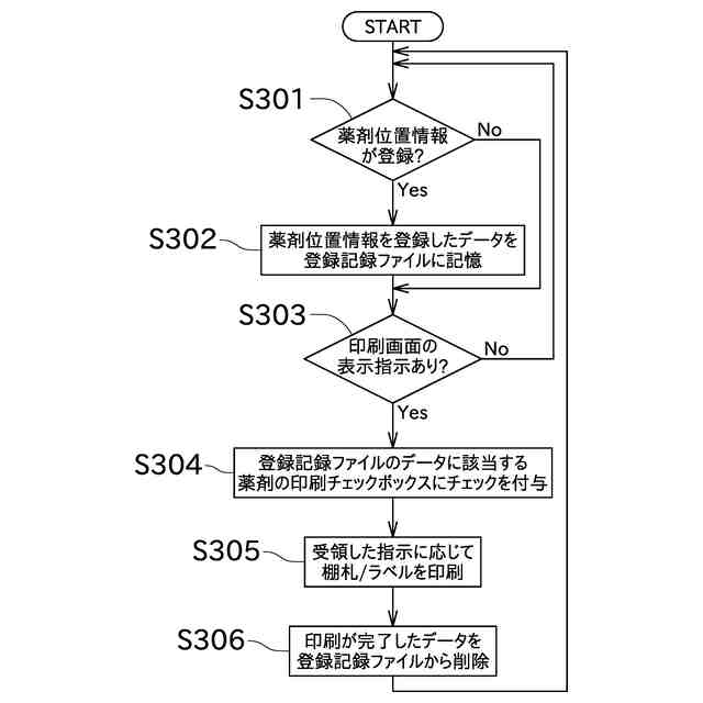 これにより、薬剤位置情報が登録された薬剤に関して登録記録情報を記憶しておけるので、薬剤位置情報が登録された薬剤の薬剤表示体を後からまとめて作成できる。