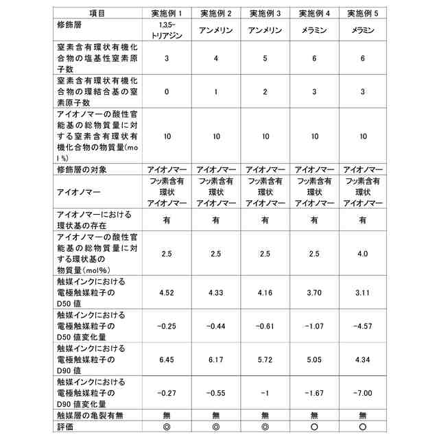 (実施形態5) 酸性官能基及びフッ素含有環状基を有するアイオノマー材料と、窒素含有環状有機化合物若しくはその重合体又はそれらのカチオンを含む修飾剤とを混合して該酸性官能基を修飾する、修飾工程
