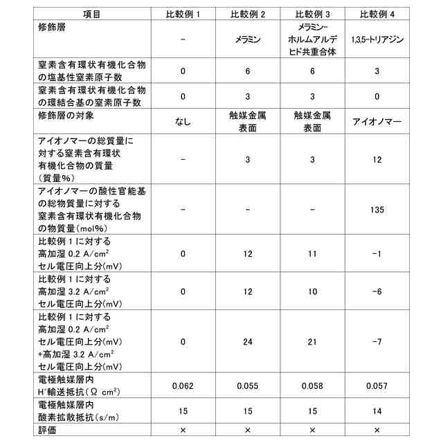(実施形態6) 電気化学的酸素還元触媒及び実施形態1から5のいずれかに記載のアイオノマーを含むカソードの電極触媒層と、アノードの電極触媒層と、該カソードの電極触媒層及び該アノードの電極触媒層の間に配置された電解質膜とを少なくとも有する、燃料電池。