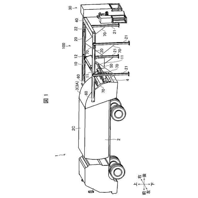 本実施形態では、洗浄装置100が洗浄する車両がパッカー車1である場合について例示しているが、このような構成に限られない。洗浄装置100が洗浄する車両は、トラック・バスなどの大型車両、またはダンプカー・パッカー車などの特殊車両であってもよい。例えば、洗浄装置100が洗浄するパッカー車1は、ダンプ可能な荷箱または荷台を備える、パッカー車またはトラックであってよい。