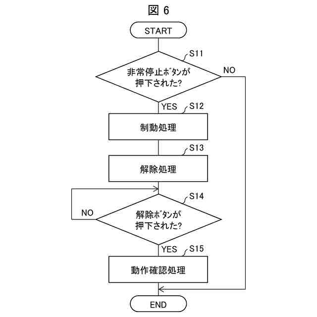 前記非常停止信号が入力された後に、前記洗浄ユニットの制動を解除する解除処理と、を実行する、