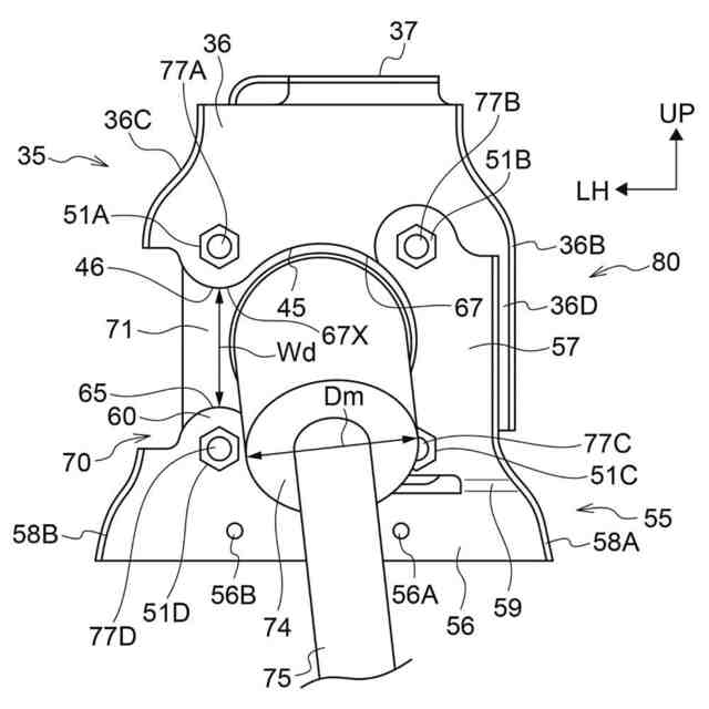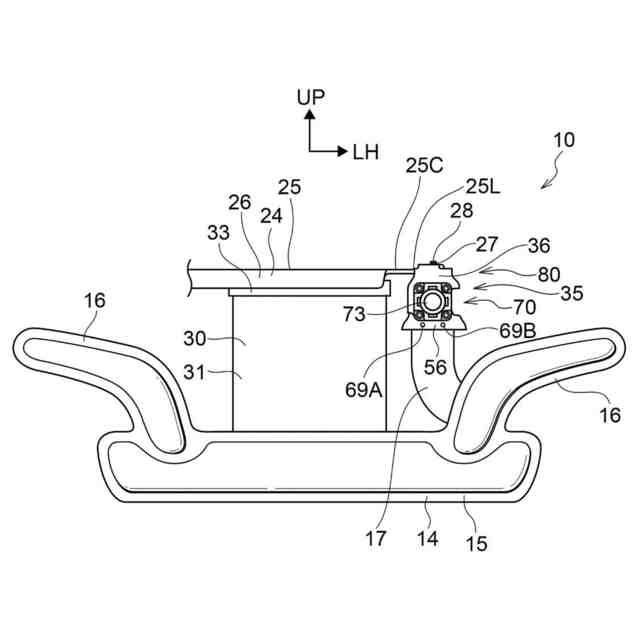 【解決手段】外周縁部において開口する第1開口部46を有する第1取付用凹部45が形成された第1ブラケット35と、外周縁部において開口する第2開口部65を有する第2取付用凹部64が形成された第2ブラケット55と、第1ブラケットと第2ブラケットが重ねられたときに第1取付用凹部及び第2取付用凹部によって構成される支持孔67を貫通する給電ケーブル74、75を備えるポートユニット70と、を備える。