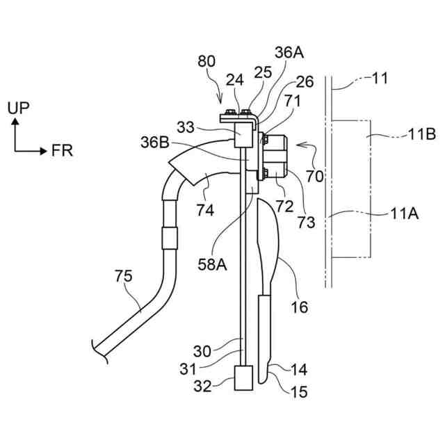 このような課題を解決するためには、例えばブラケットに、ブラケットをその厚み方向に貫通するとともに一部がブラケットの外周縁部において開口する取付用凹部を設けることが考えらえる。この場合は給電ケーブルの一部をブラケットの外周縁部に形成された開口から取付用凹部に挿入できる。そのため給電ケーブルを取付用凹部に挿入する際に、給電ケーブルが取付用凹部によって摩耗したり損傷したりするおそれは小さい。しかしこの場合はブラケットの剛性が取付用凹部の上記開口に起因して低下するおそれがある。給電ポートを支持するブラケットの剛性が小さい場合は、充電ケーブルのコネクタの充電ポートとの脱着作業を円滑に行うのが難しくなる。