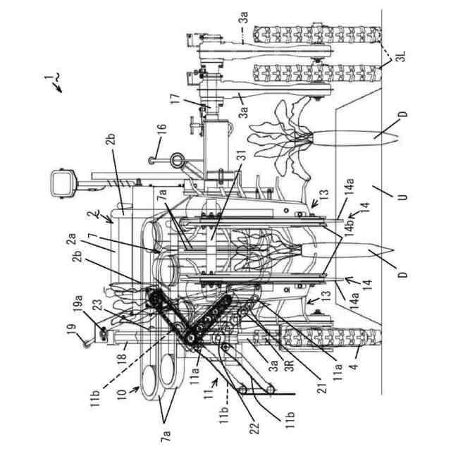 然しながら、メインフレームが車輪の近傍で挟持搬送部の下方に設けられており、大根のように長い根菜を引き抜いた後に別の位置に移動させて横置きするには、メインフレームを超えて移動させなければならず、メインフレームに茎葉が巻き付いて適切に引き抜き収穫できず所定の位置に排出できない。